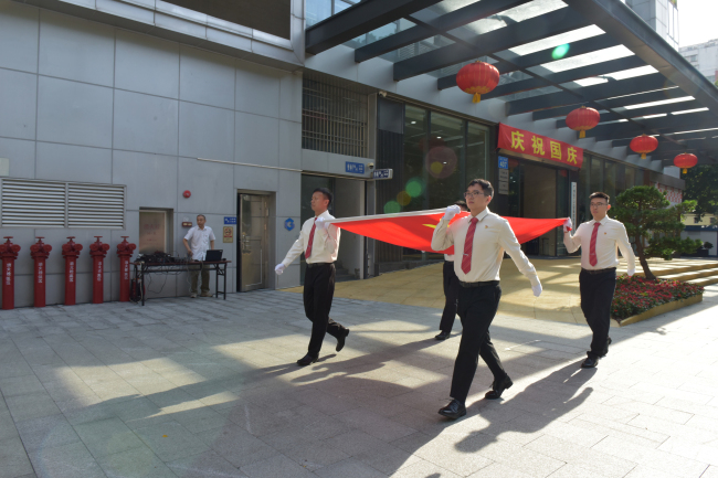 金秋时节,丹桂飘香;举国欢腾,共迎国庆。为庆祝中华人民共和国成立76周年,弘扬爱国主义精神,表达对祖国的祝福,增强员工队伍凝聚力和向心力,切实展现轻工人向新、向上、向未来的精神风貌。9月30日上午,集团总部在总部大楼一楼广场举行升国旗仪式,集团党委书记、董事长林虎带领班子成员、高管、总部全体员工共91人参加仪式。