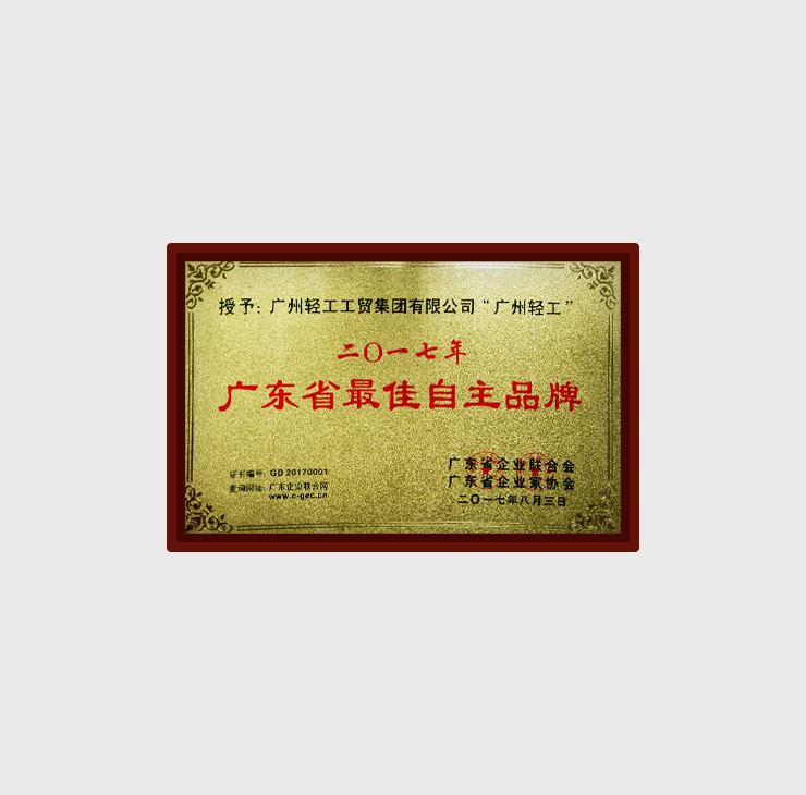 获奖单位:广州双鱼体育用品集团有限公司、广州鹰金钱食品集团有限公司、广州市虎头电池集团股份有限公司、广州浪奇日用品有限公司、广州市日用化学工业研究所有限公司、广东炜鸿塑料科技有限公司、广州百花香料股份有限公司、广州华糖食品有限公司、广东省亚洲香雪食品有限公司、广州市浪奇实业股份有限公司、广州市人民印刷厂股份有限公司、广东广纺检测技术股份有限公司、韶关浪奇有限公司、广东鹰金钱海宝食品有限公司