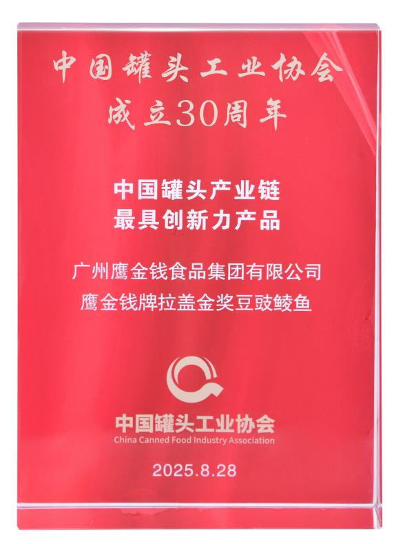 广州轻工集团鹰金钱公司凭借百年老字号的历史沉淀与市场竞争力,推动行业标准共建、海内外市场拓展、创新品牌营销,让“中国罐头”的标杆力量辐射全球。“鹰金钱”品牌荣获“中国罐头最受消费者欢迎罐头品牌”,金奖豆豉鲮鱼(山姆专供版)产品荣获“中国罐头产业最具创新力产品”。