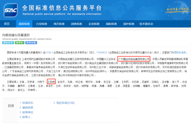 作为罐头行业“标准先锋”,鹰金钱公司主导或参与制定《鲮鱼罐头质量通则》《罐头食品生产卫生规范》等国家标准7项、团体标准2项,拥有有效企业标准9项,为产业提供了技术标尺。近期,参与修订的国家标准《GB/T 13213-2025 肉糜类罐头质量通则》获国家市场监督管理总局(国家标准化管理委员会)批准发布,新标准实现了扩大适用范围、明确术语定义、细化指标等三大突破性升级,对于肉糜类罐头产业的发展起到重要作用。鹰金钱公司配合湾区认证中心的专家组制定了《淡水鱼罐头湾区认证技术规范》,产品检验结果均符合(中国)内地强制性食品安全国家标准和港澳地区的最高标准,成为首个获得淡水鱼罐头“湾区认证”的企业。
