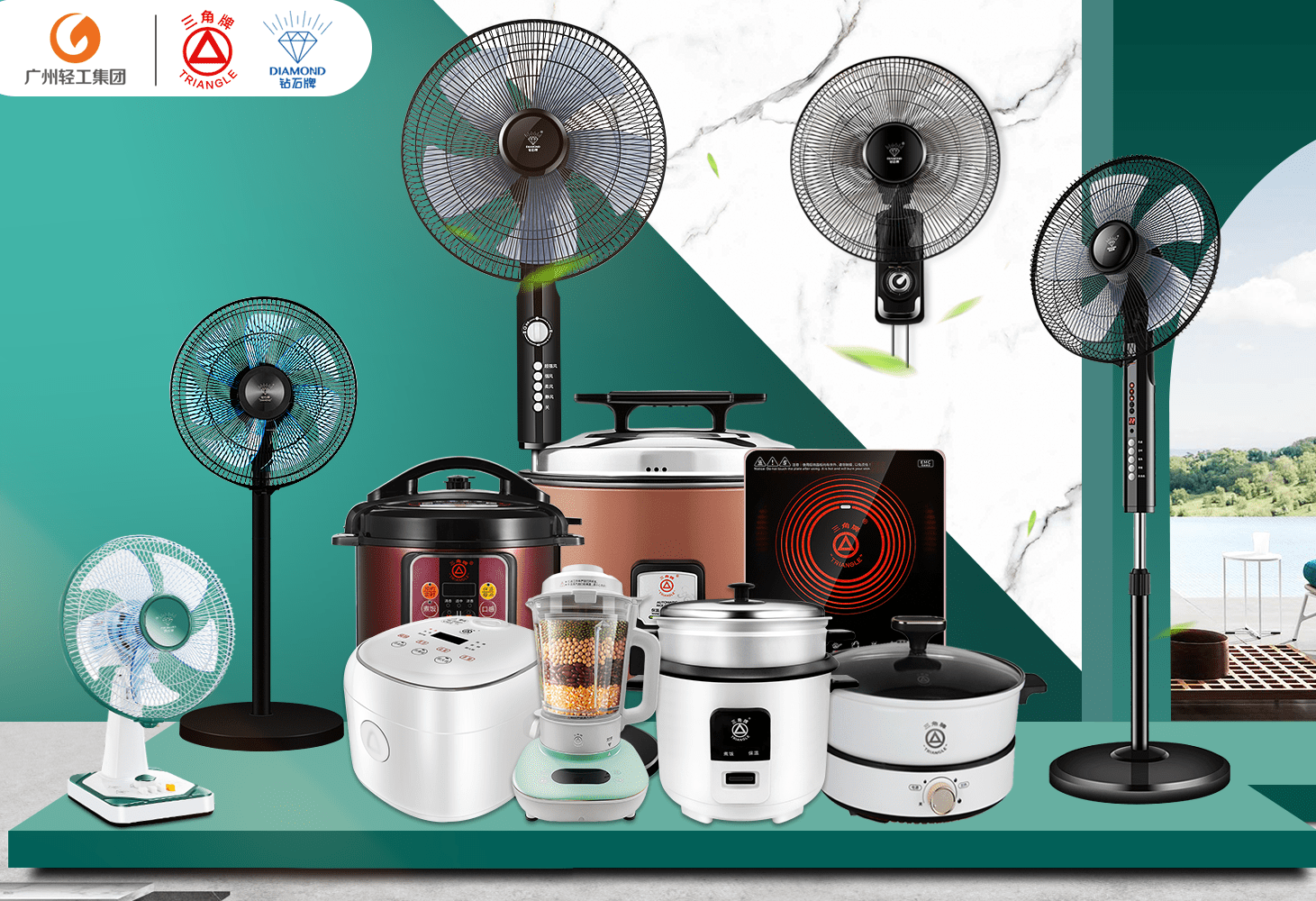 广东三角牌电器股份有限公司(简称“三角公司”)是广州市属国企华体育官方网站(简称“广州轻工集团”)下属二级企业,旗下拥有“三角牌”、“钻石牌“两知名品牌,同时也是中国最早的家电品牌。三角牌以厨房小家电为主,钻石牌聚焦环境通风领域,两品牌年产销量均超1500万台。