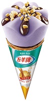 五羊甜筒经典口味系列(产品图片二):香脆的蛋筒包裹着幼滑的香芋味、哈蜜瓜味、巧克力味、菠萝味、双皮奶味及榴莲口味雪糕,香脆花生,顺滑口感,与表面的巧克力味涂层相互配合,啖啖好味。6种诱惑6种选择,将成为与你永远相伴的经典。